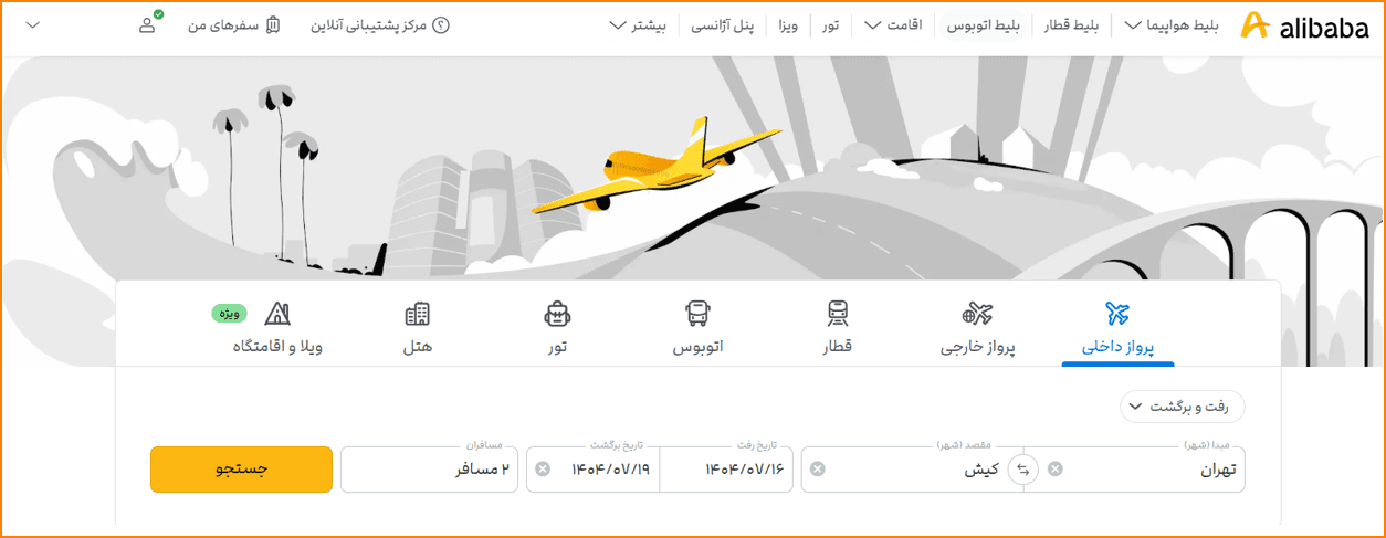 اول از همه به وبسایت علیبابا بروید و وارد حساب کاربری شوید. برای ورود به حساب کاربری، روی علامت آدمک بزنید. حالا صفحهای باز میشود تا شماره همراه خود را وارد کنید. سپس از بالای صفحه روی گزینه «سفرهای من» بزنید.