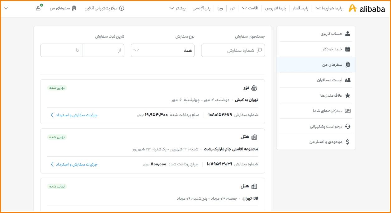 نتیجه این درخواست در بخش «سفرهای من»، قسمت «جزئیات سفارش محصول خریداریشده» قابل مشاهده است.