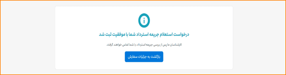 در صورت انصراف از استرداد، روی گزینه آبیرنگ «بازگشت به جزئیات سفارش» بزنید.