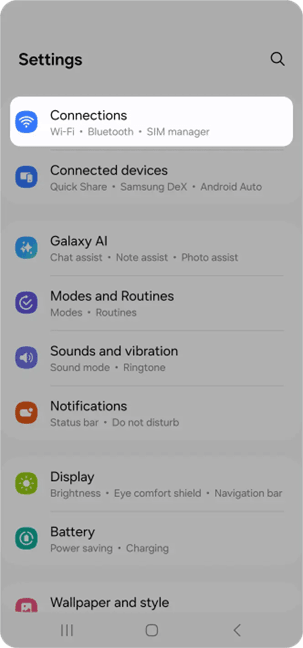 5.در این مرحله، وارد Settings شوید و روی Connections کلیک کنید.