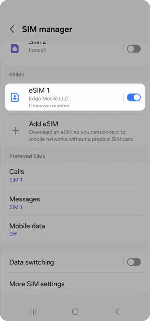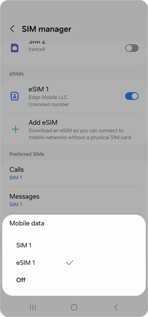 8.برای استفاده از اینترنت eSIM ، کافی است در همین صفحه روی گزینه mobile data کلیک کرده و eSIM را انتخاب کنید.