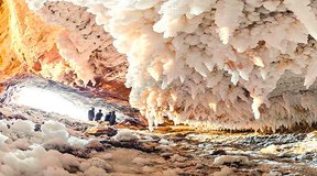 قشماگر به 90 کیلومتری جزیره قشم سفر کنید، گنبدی بزرگ را میبینید که داخل آن غارهای نمکدان قرار گرفتهاند. غار نمکدان یکی از جاذبههای طبیعی شهر قشم است که حدود 6 کیلومتر طول دارد. این غار که حدود 500 سال قدمت دارد، به نام غار سه مرد برهنه نیز معروف است. غار نمکدان دارای نمکهای خوراکی، با کیفیتی عالی و سرشار از مواد معدنی است. ارتفاع غار نمکدان قشم که طولانیترین غار نمکی جهان نیز بهشمار میرود، حدودا 20 متر است. غار نمکدان دارای راهروهای متعددی است که فقط راهروی اول برای گردشگران مناسب است و راهروهای بعدی دارای ارتفاعی بسیار کم هستند.